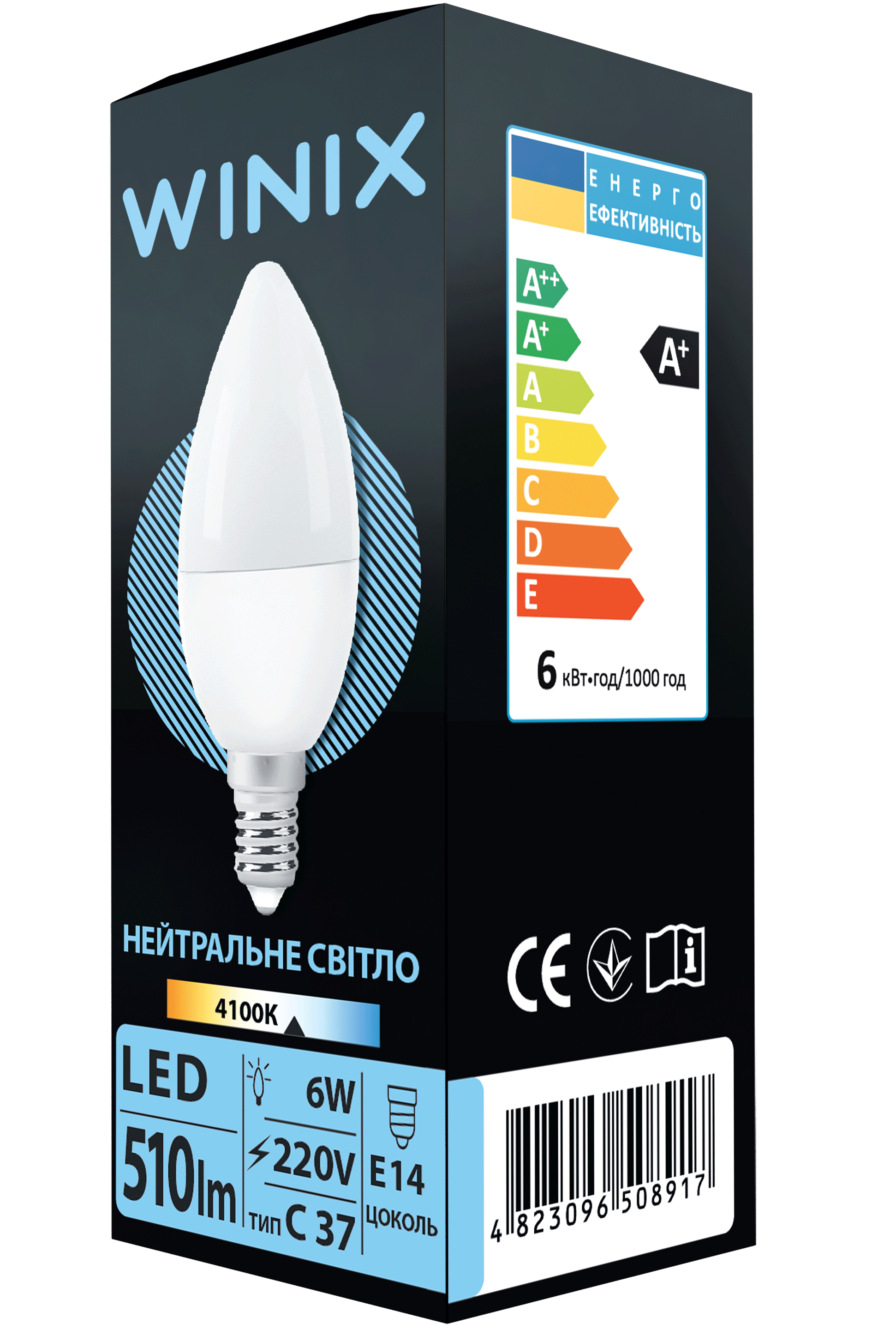 Лампа Winix C37144-06W Модель — C37Артикул — C37144-06WПотужність — 6WЦоколь — E14Кольорова температура — 4100KНомінальний світловий потік лампи — 510ЛмНомінальний термін служби лампи, годин — 20000Кількість циклів вмикань — 20000Час розігріву лампи до 60% повної світлової віддачі, секунд — ≤0,5Рeгулювання яскравості (робота з димером) — НемаєРобоча температура лампи — -20 С° + 40 С°Розмір лампи, Діаметр — 37ммРозмір лампи, Висота — 100ммКоефіцієнт збереження світловіддачі — ≥0,948Коефіцієнт потужності — 0,6Вольтажний діапазон — AC175-250V 50Hz/60HzКут розсіювання — 250°Енергоефективність(Lm/W) — 85Лм/ВтЯкість світла — Ra>80Матеріал корпуса — Alu+PlastКлас енергозбереження — А+Максимальна сила струму — 45мА » дивитись весь каталог